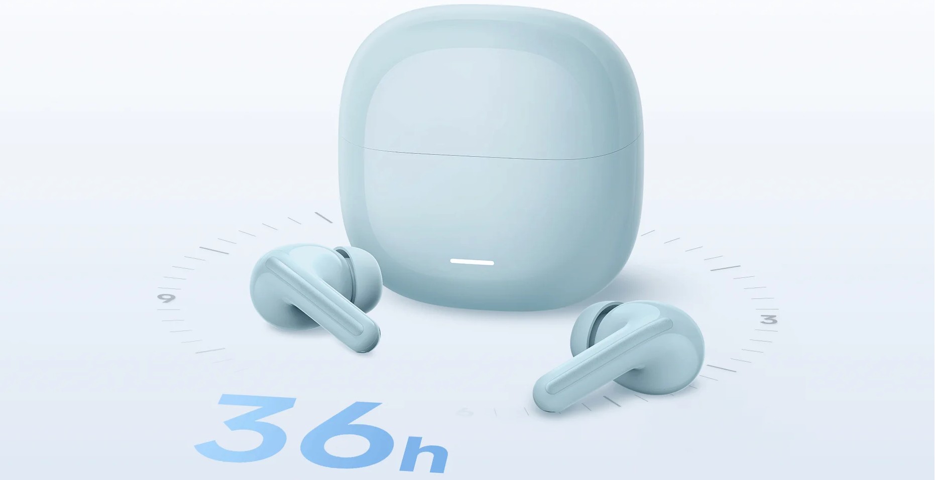 Buds 8 Lite работают до 8 часов без подзарядки, а с использованием зарядного кейса общее время прослушивания увеличивается до 36 часов. Зарядка осуществляется через USB Type-C, а поддержка быстрой зарядки позволяет быстрее вернуть наушники к работе.