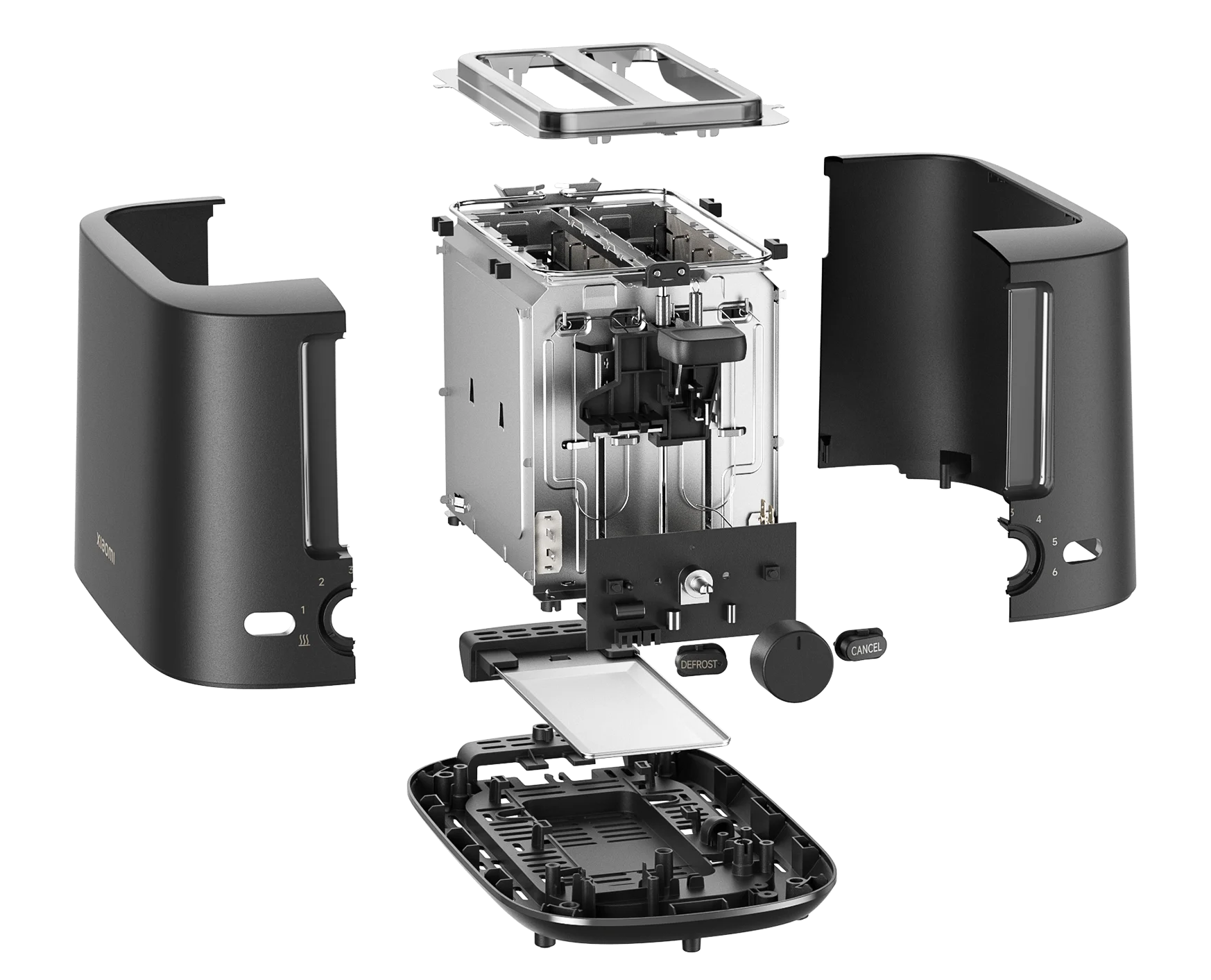 Внутренняя отделка тостера выполнена из материалов, которые обеспечивают безопасность для здоровья при контакте с пищевыми продуктами.